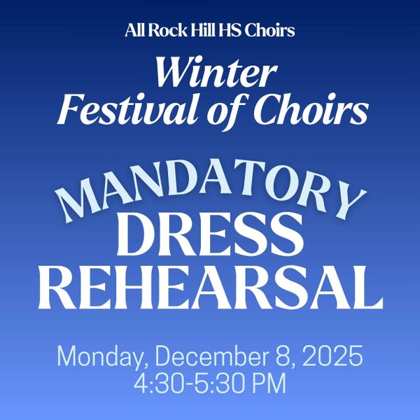 Don't miss the next opportunity to hear the RHHS choirs (as well as the choirs from Hays MS and Jones MS) on Tuesday, December 9th at 6:30 PM in the Rock Hill HS Auditorium.